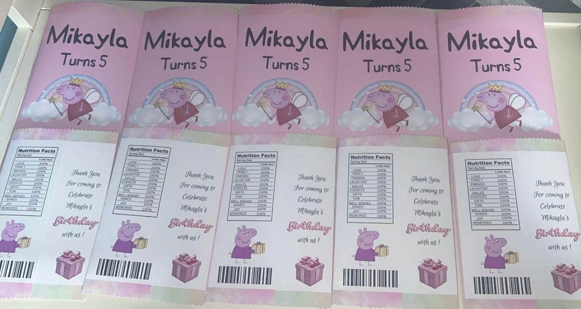 PERSONALISED CRISP PACKET PARTY FAVOURS - ANY THEME PEPPA PIG